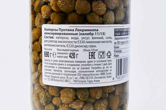 Каперсы Пунтина Лакримелла в уксусе ст/б 0.690 кг *6