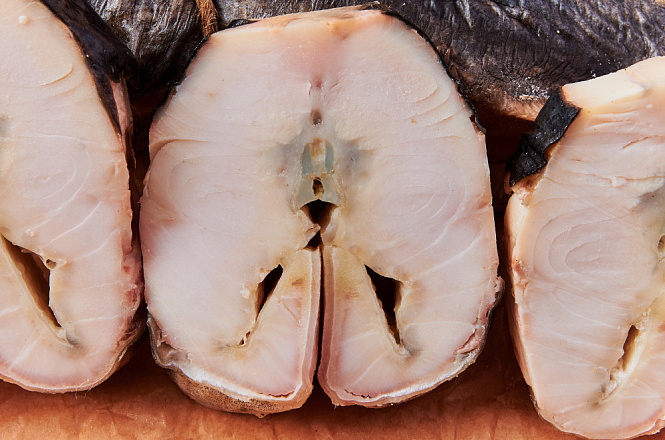 Рыба отлично подходит для рыбных нарезок, закусок и праздничного стола. Белуга горячего копчения прекрасно сочетается со свежими овощами, зеленью и различными гарнирами.