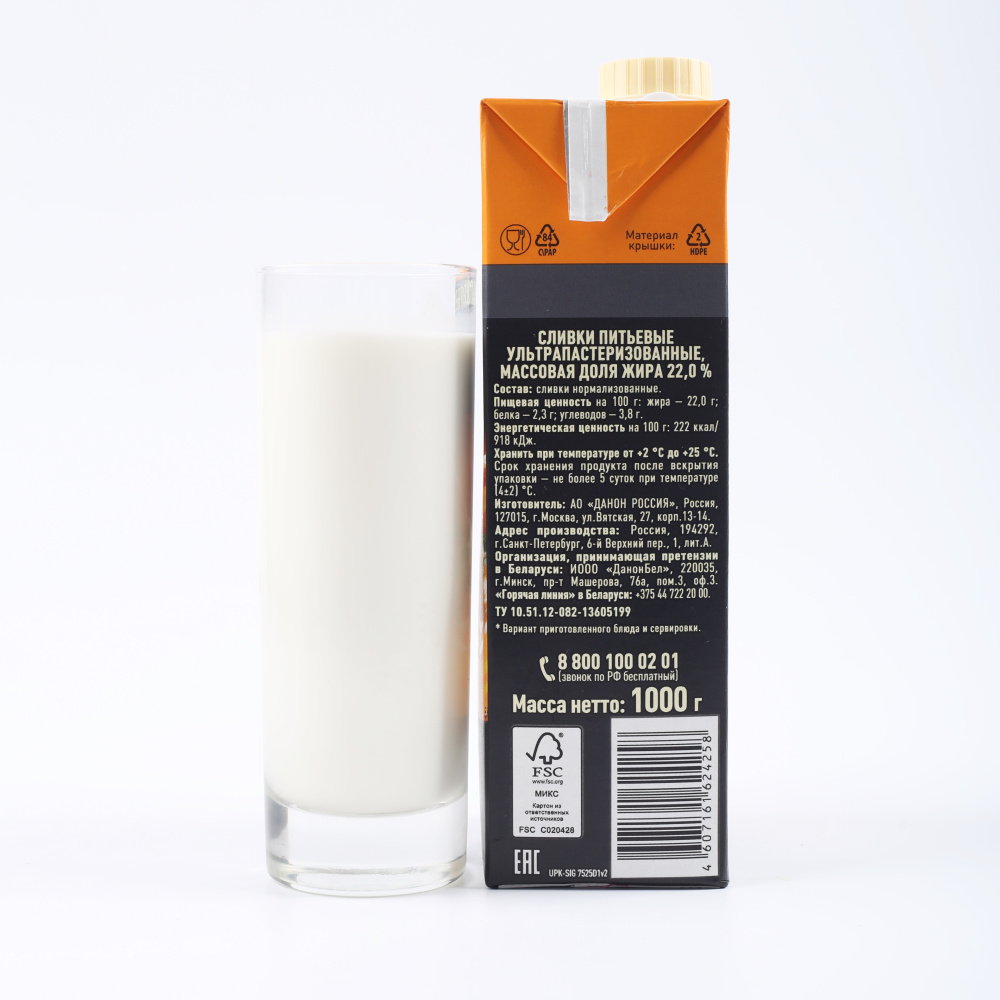 Полное наименование: Сливки питьевые ультрапастеризованные ПЕТМОЛ 22%