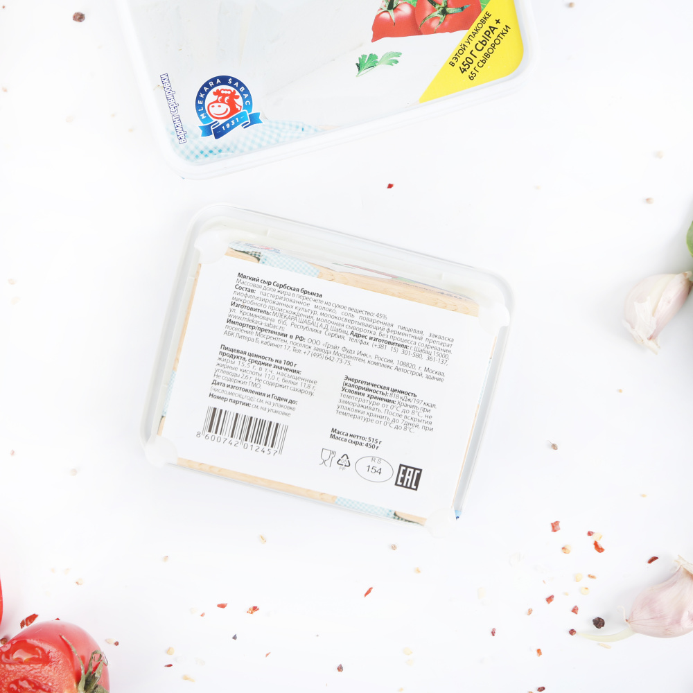 Сыр мягкий Сербская Брынза 45% 450 г.